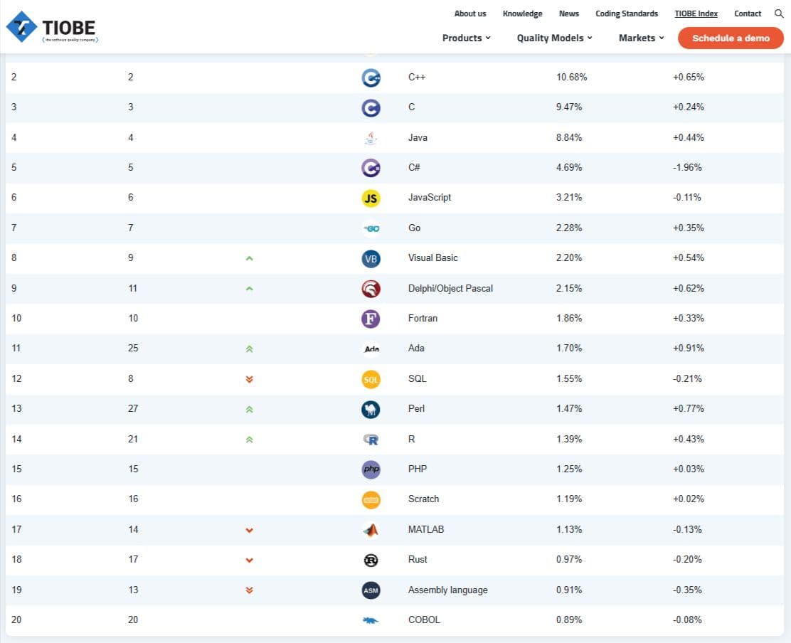 When we wrote this article in February of 2024, PHP was ranked #8. As of June 2025, PHP has fallen to the #15.
